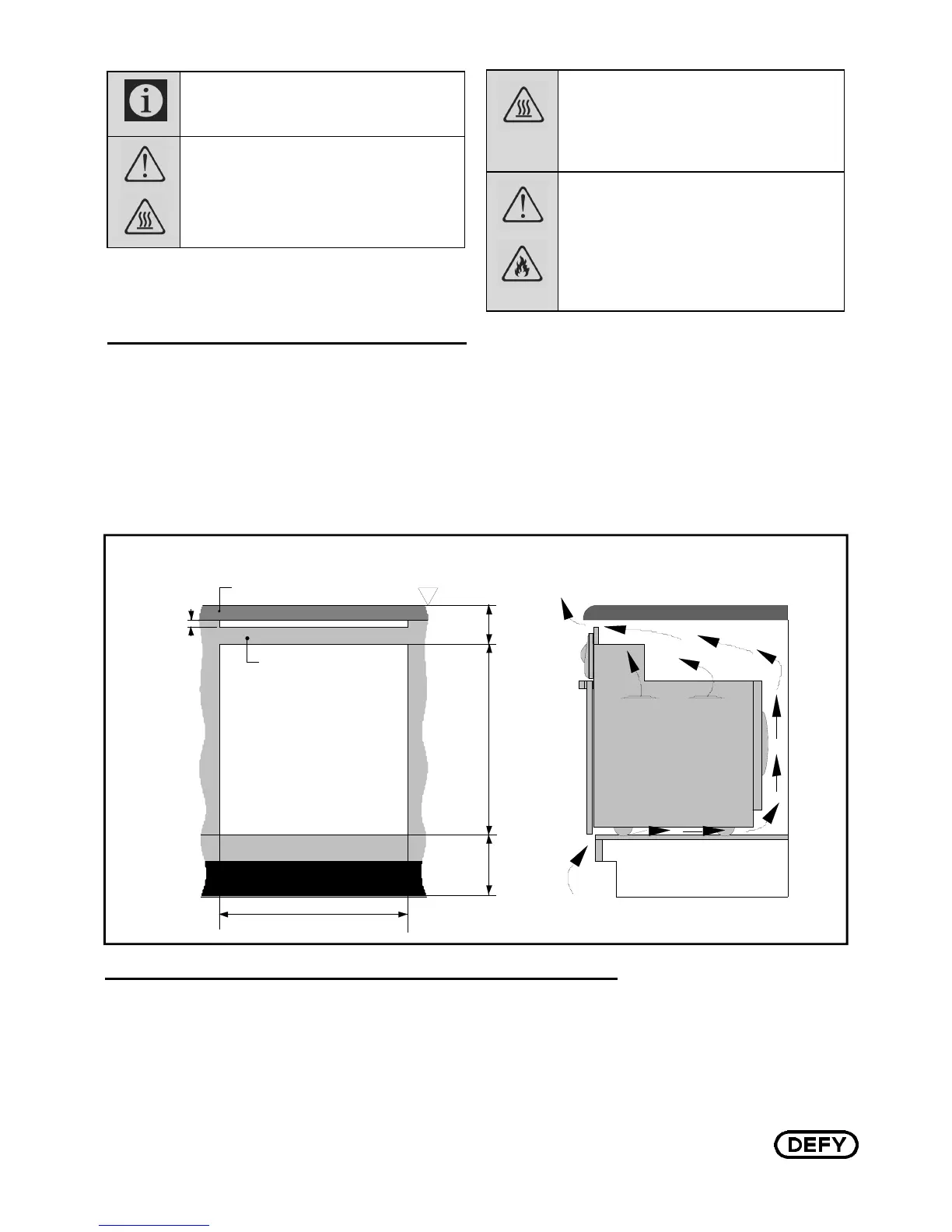 • Defy Slimline under-counter ovens may be installed at eye level if so