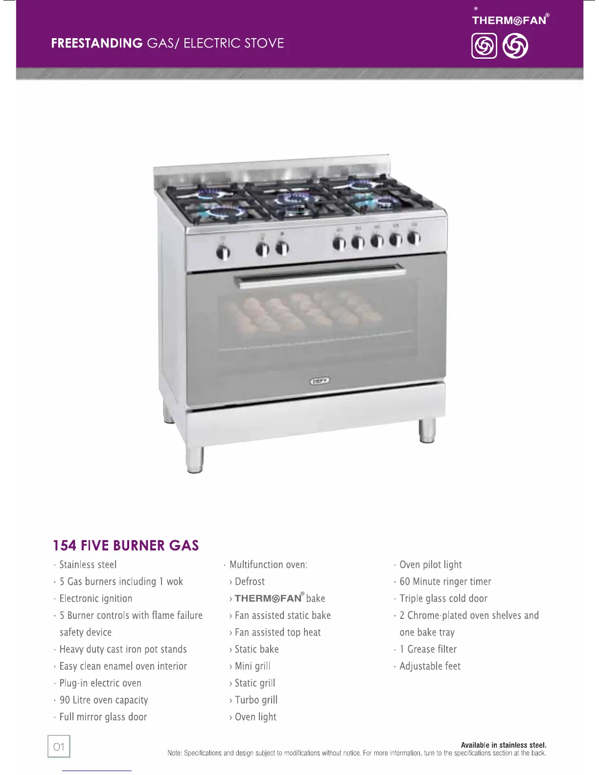 Defy 835 - Gas; Electric Stoves; 154 Five Burner Gas; Electric
