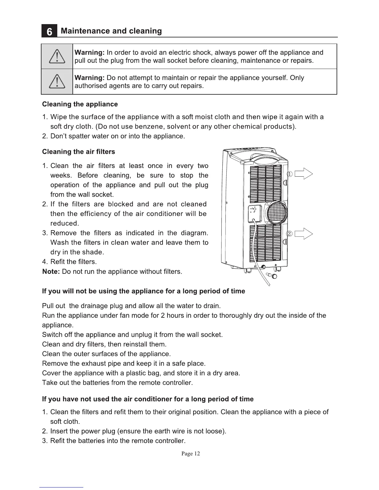 Defy ACP09H2 - Maintenance and Cleaning; Appliance and Filter Cleaning; Long-Term Storage and Re-use