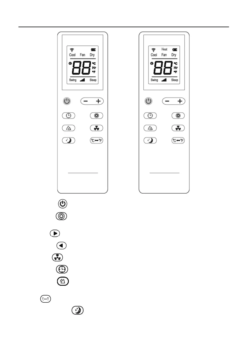 7.Swing: Press the key to open or close swing style. Air flow of the air outlet can