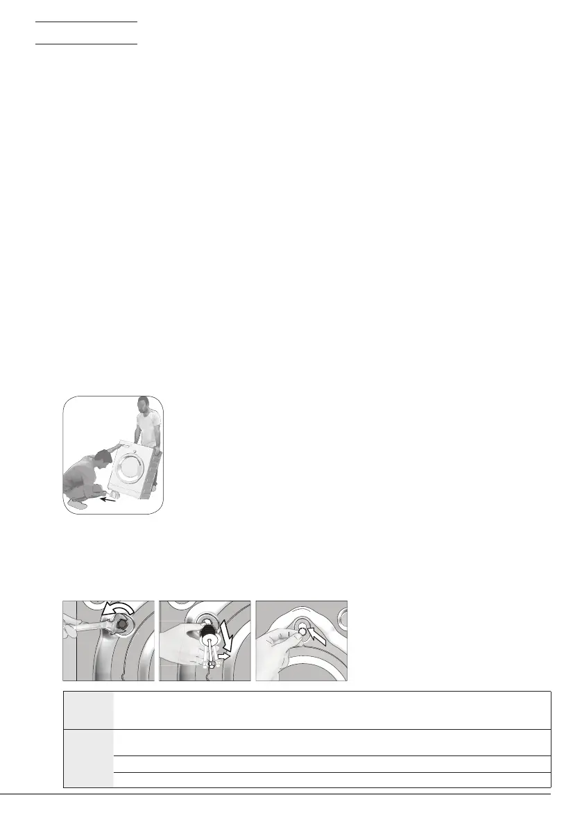 CAUTION: Remove the transportation safety bolts before operating the washing machine! Otherwise, the
