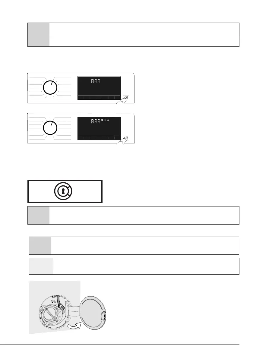 indicator turns off, washing cycle starts and the time of the selected programme appears on the display.