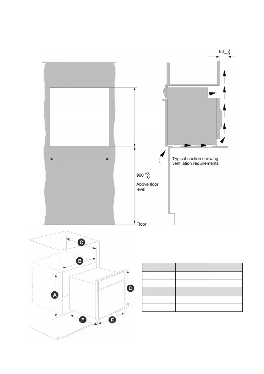 Secure the oven by 4 countersunk screws (fasteners are not supplied).