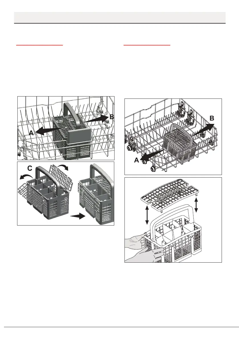 Since the cutlery basket can be moved (A,
