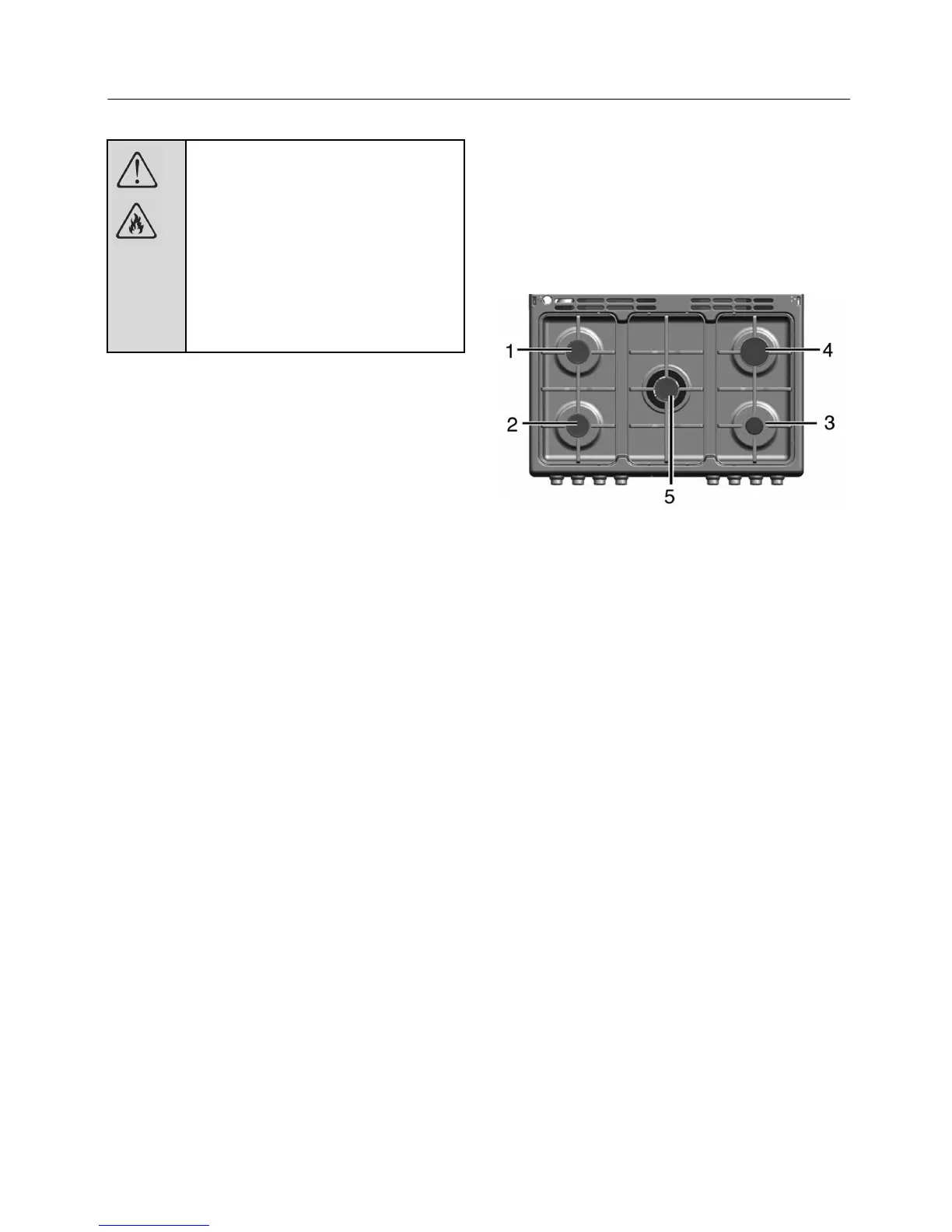 large flame symbol. Gas is ignited with the