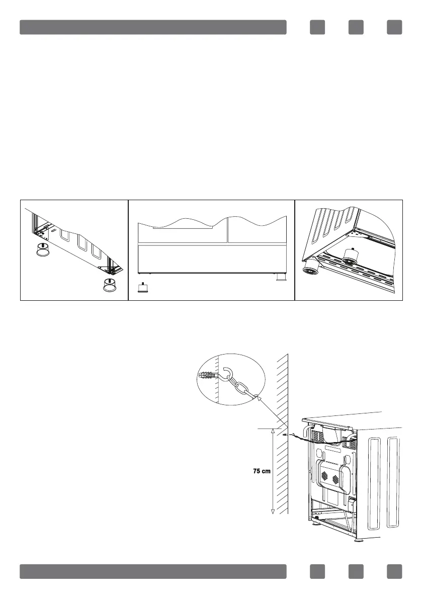 2. You can balance your oven by turning the screwed feet according to