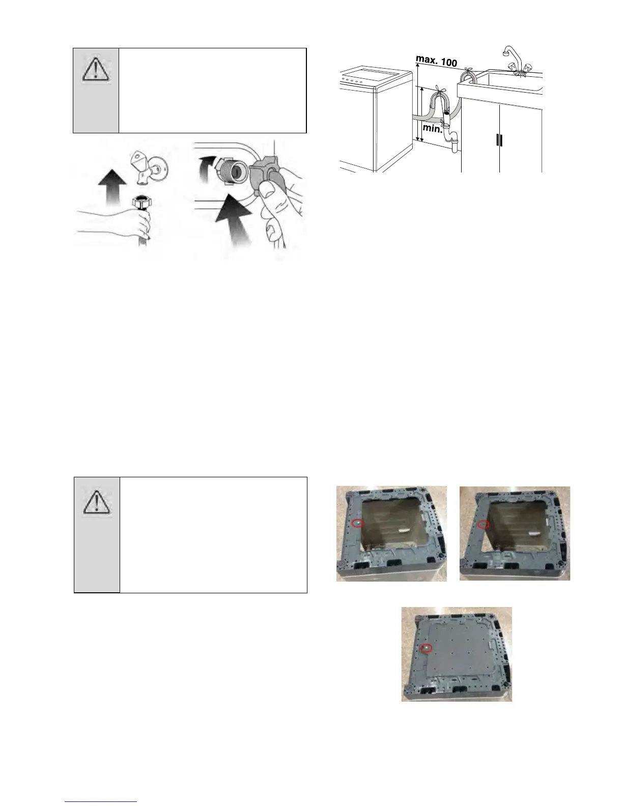 • The hose should be attached to a height of