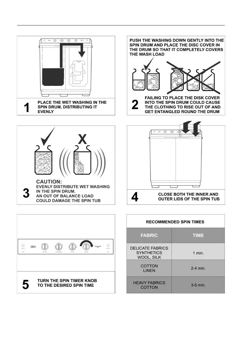 Defy DTT180 - Spin Drying Guide; Spin Drying Procedure