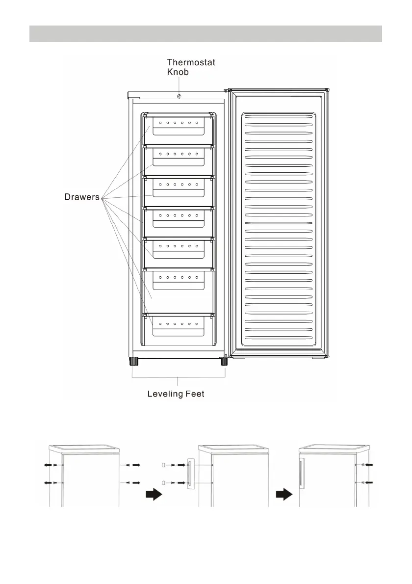 Defy DUF300 - Freezer Description; Fitting the door handle
