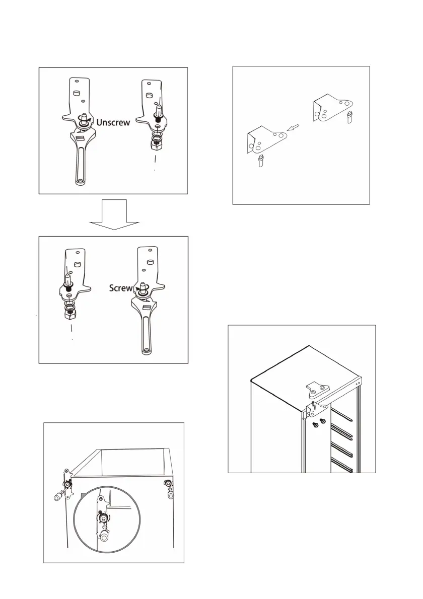 7.Unscrew the top hinge pin and mount it