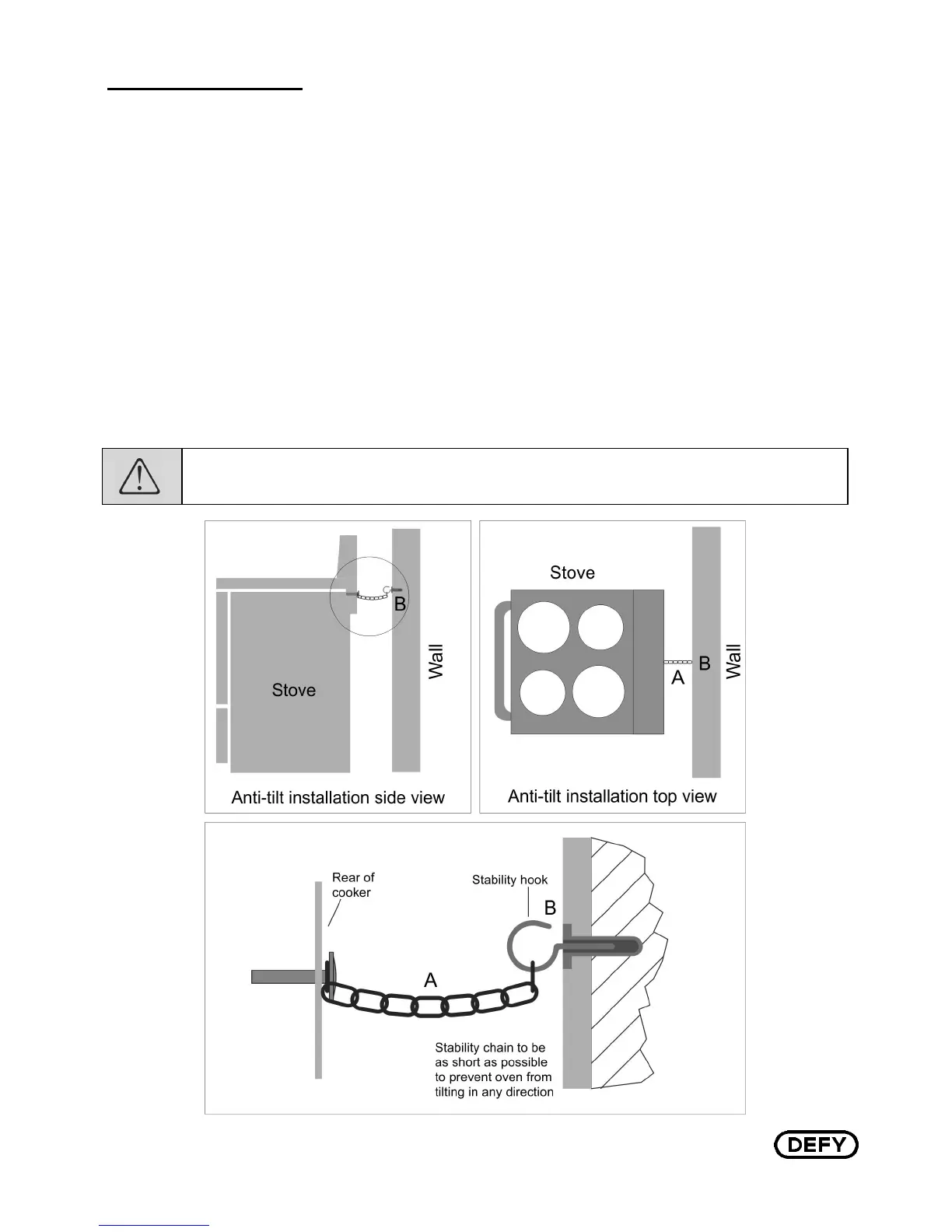 Safety regulations stipulate that the ANTI-TILT mechanism supplied with the stove,