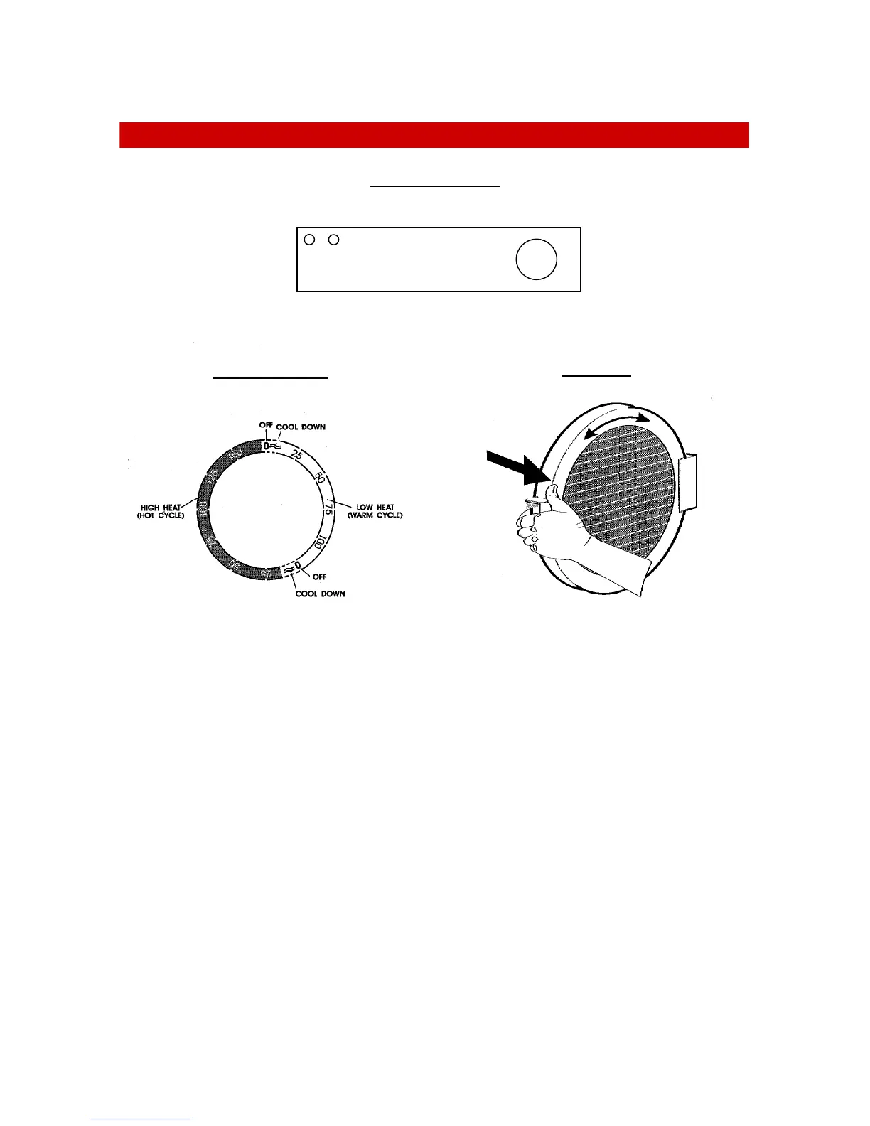 The timer knob allows the selection of High (HOT) or Low (WARM) heat and the