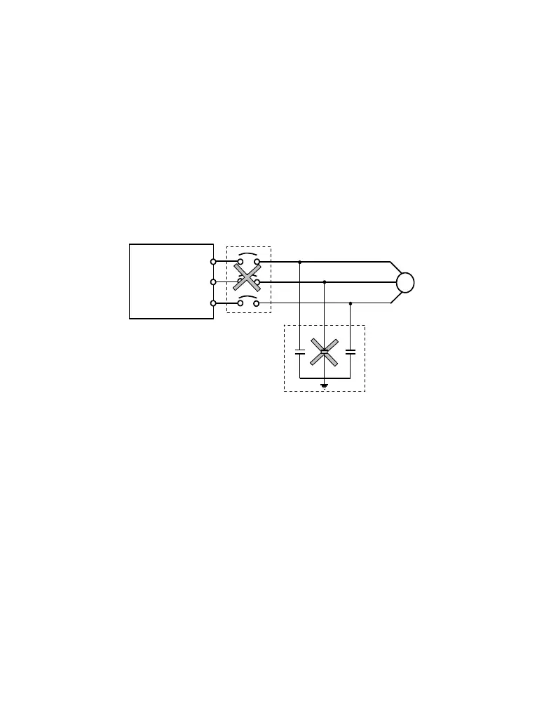 5. Voltage-sensitive device or capacitor on output side of the AC drive