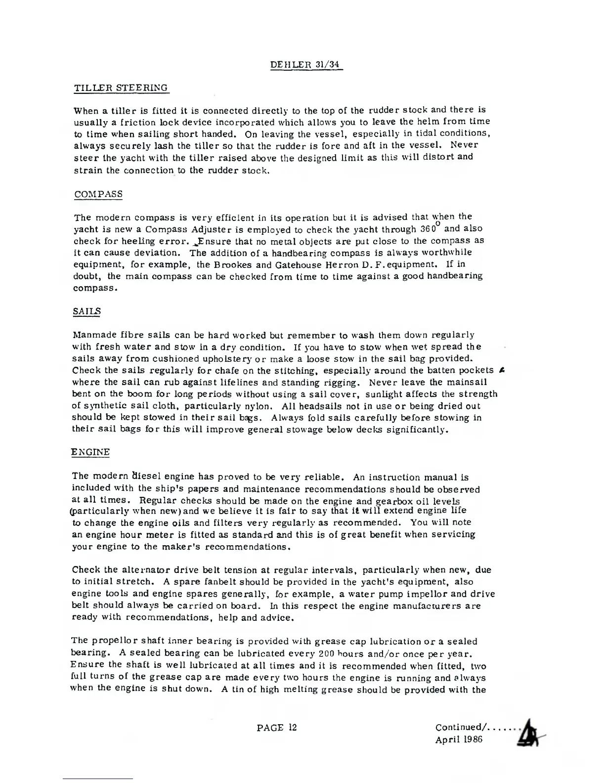 to time when sailing short handed. On leaving the vessel, especially in tidal conditions,
