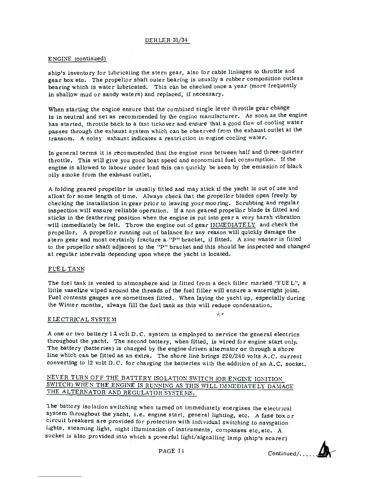 inspection will ensure reliable operation. If a non geared propellor blade is fitted and