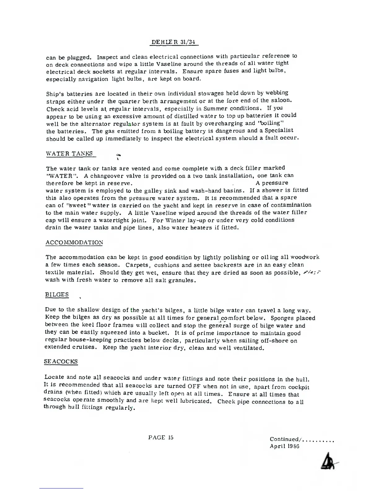 extended cruises. Keep the yacht interior dry, clean and well ventilated.