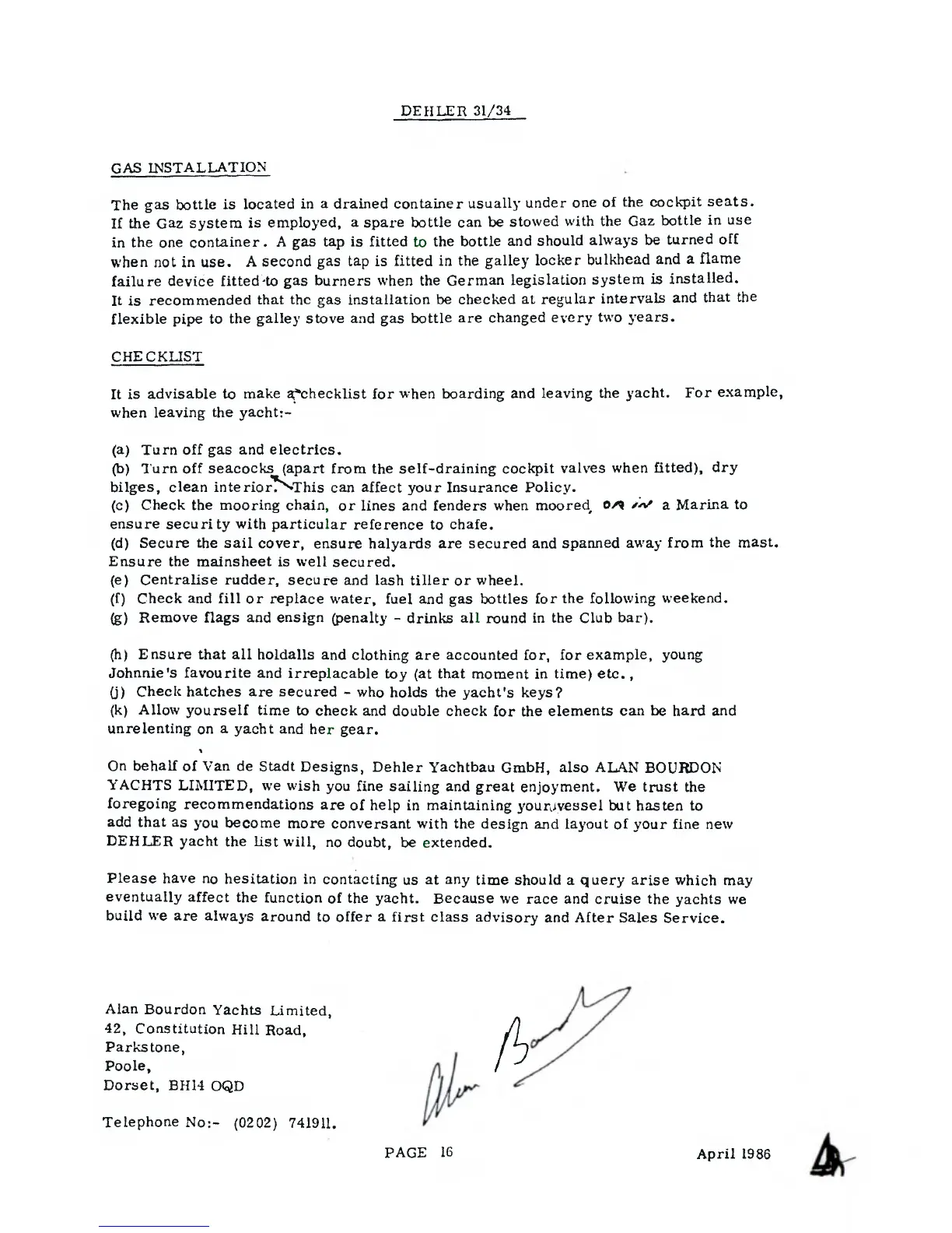 YACHTS LIMITED, we wish you fine sailing and great enjoyment. We trust the