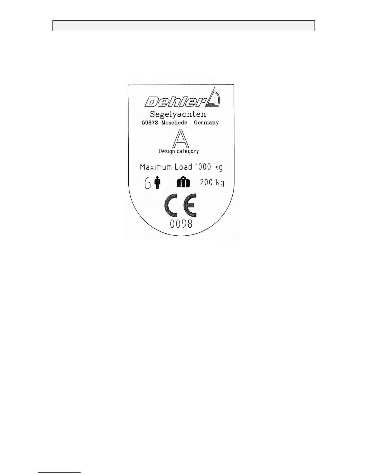 0098 CE Sign indicating that the boat was built according to the