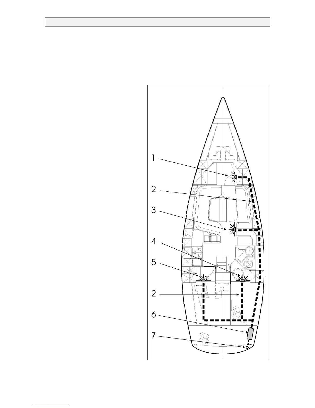 towards four outlets in the cabin, bow,