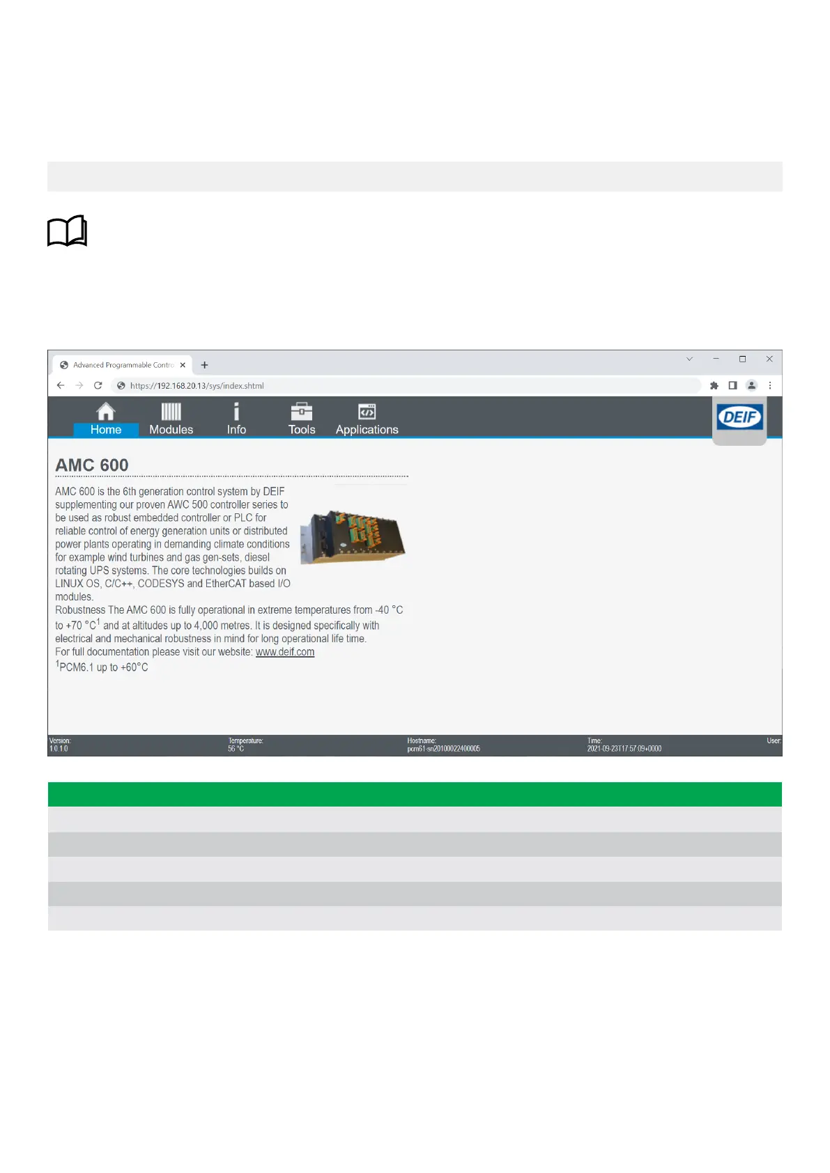 To access the AMC 600 system page, open a browser and go to: