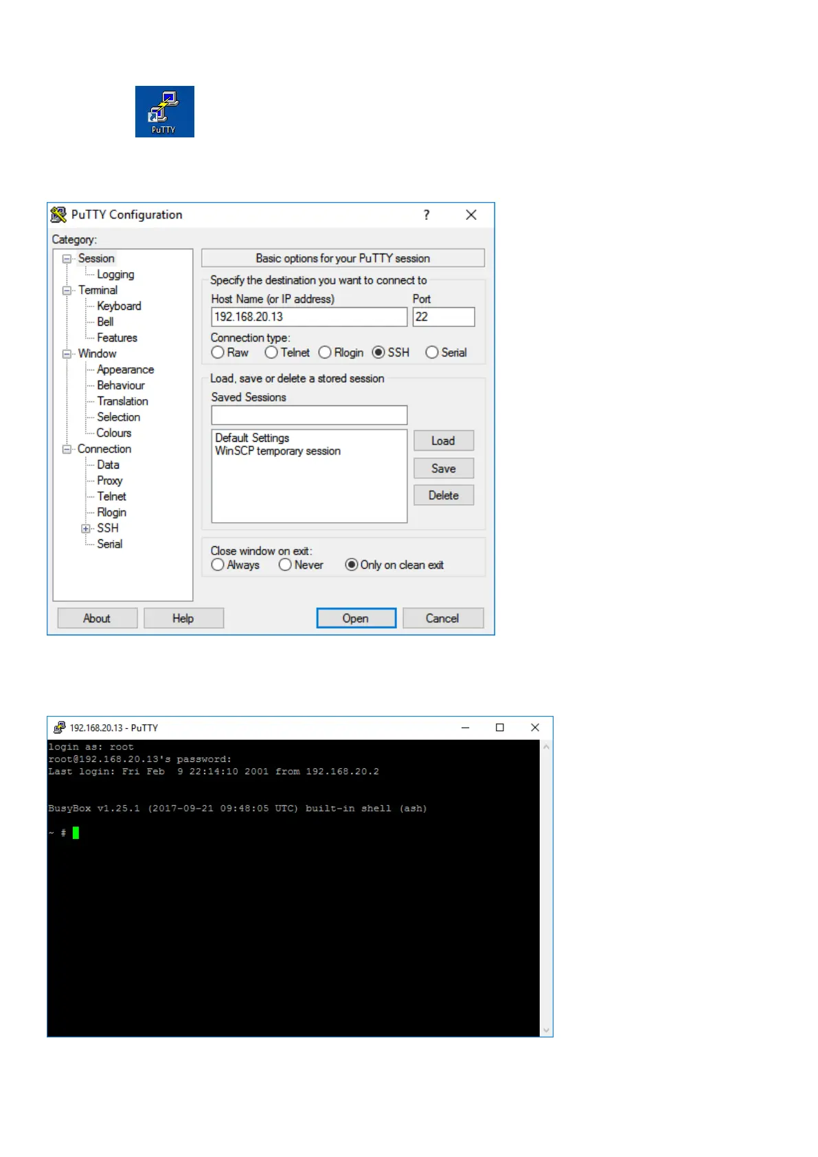 4.3.2 Create connection with PuTTY