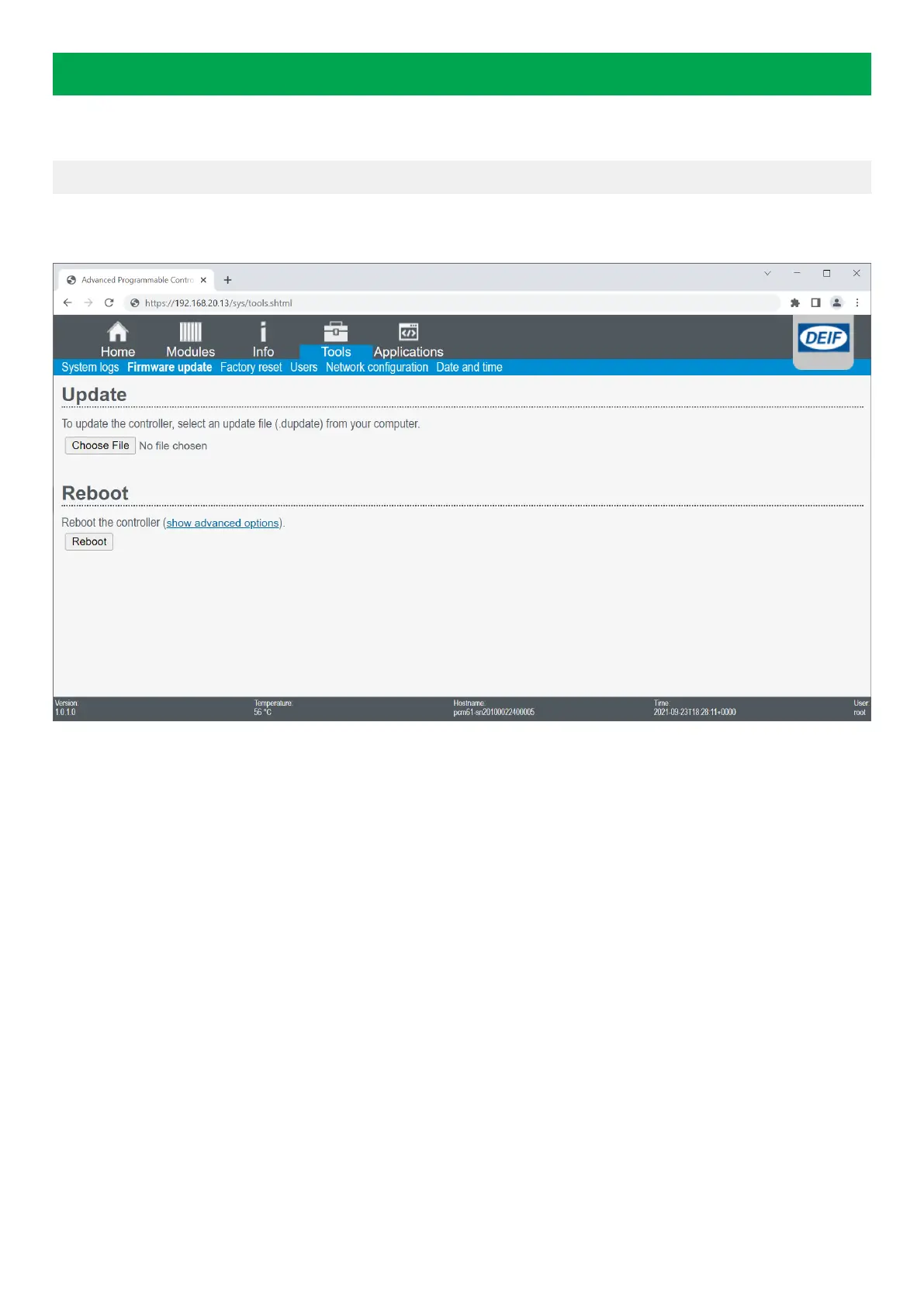 Deif AMC 600 - Update Firmware; Web-based Firmware Update Procedure