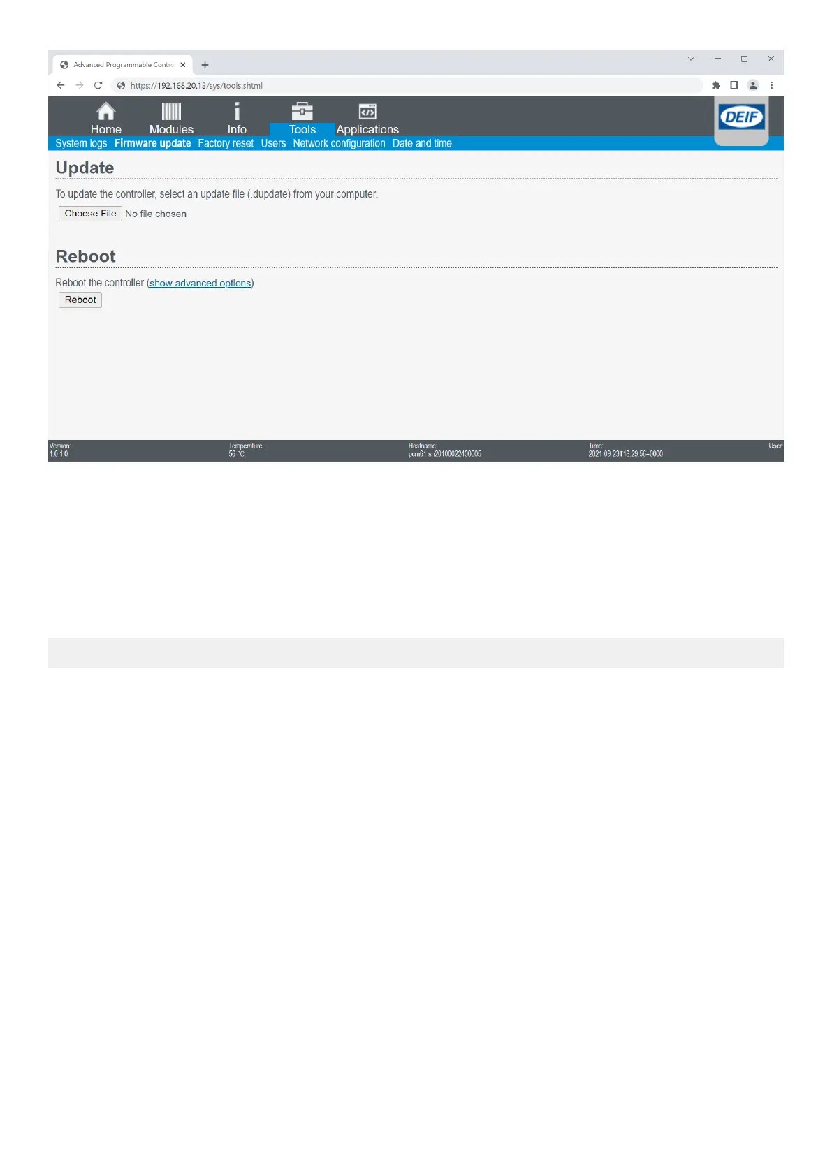 Wait for the reboot process to be finished. Then reload the webpage, the updated version number can be found on the lower left