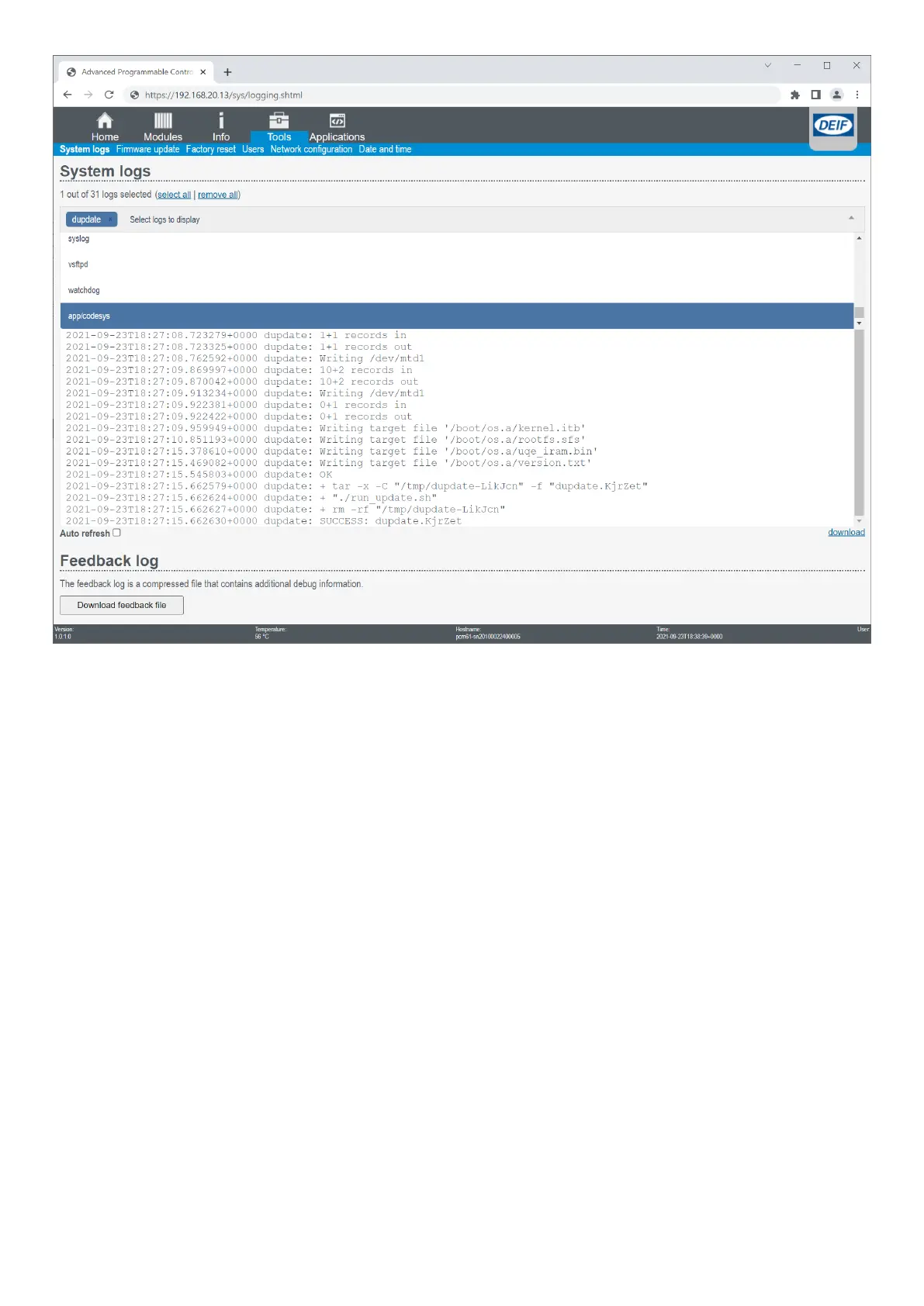 Select Download feedback file to get the compressed feedback log file. Unzip the file to access the individual files.