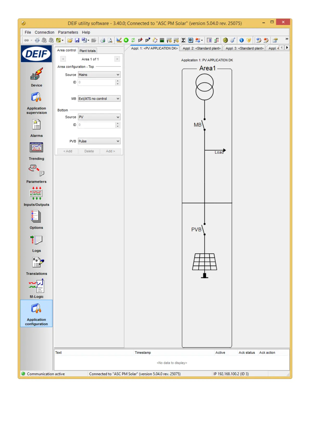 This example shows the plant with one ASC in a configuration with grid. The number of generators in the application cannot be