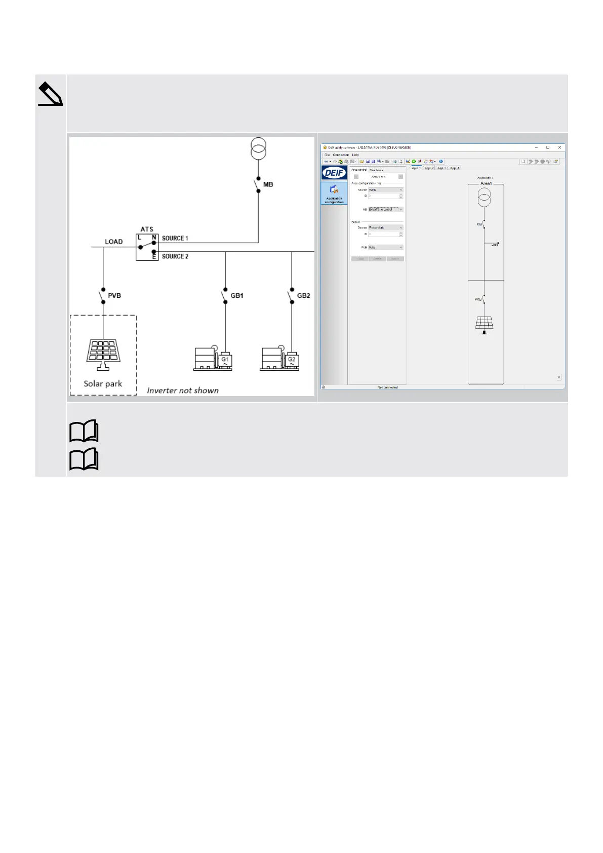 This is an example of a stand-alone application where a solar park supplies the load in combination with a mains