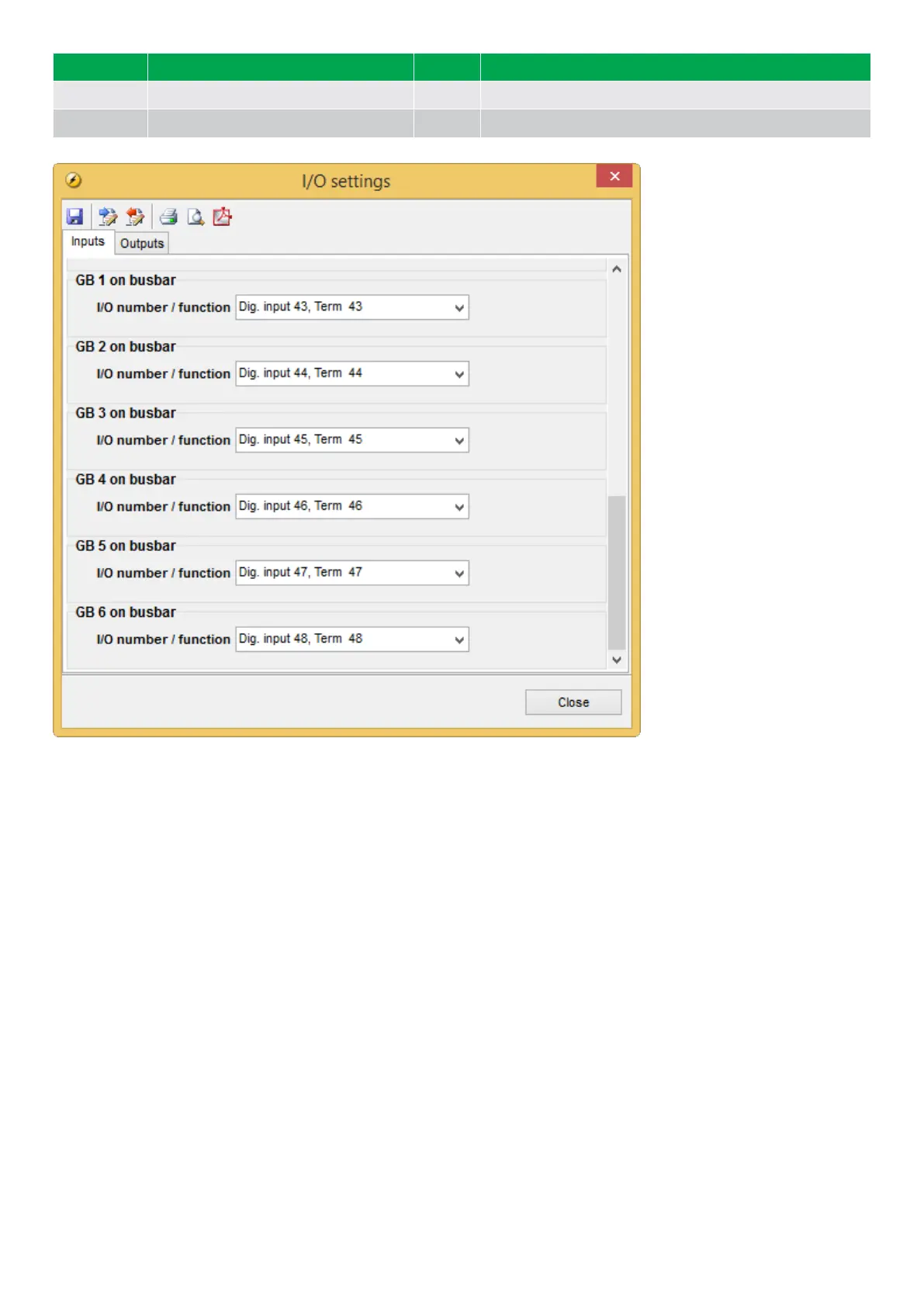 Select the desired inputs in the I/O settings, which are accessed from the horizontal toolbar.