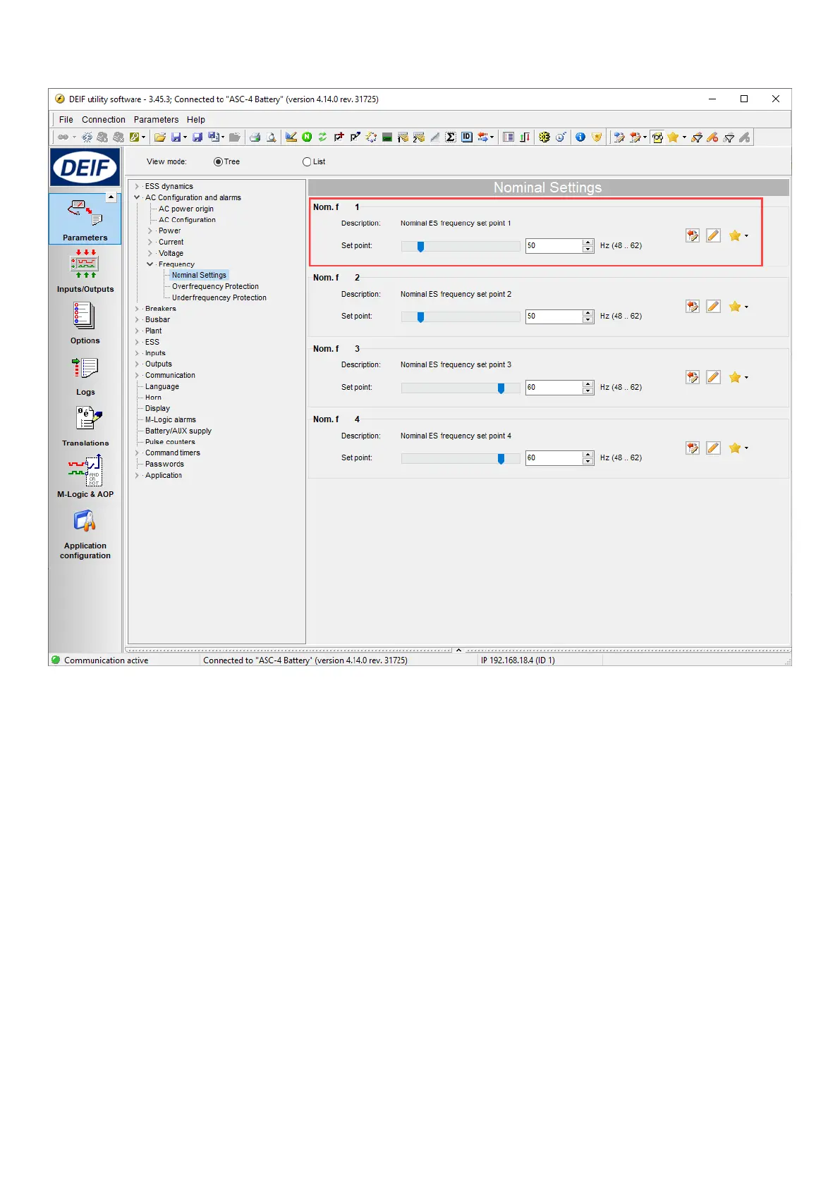 Deif ASC-4 - Nominal Frequency