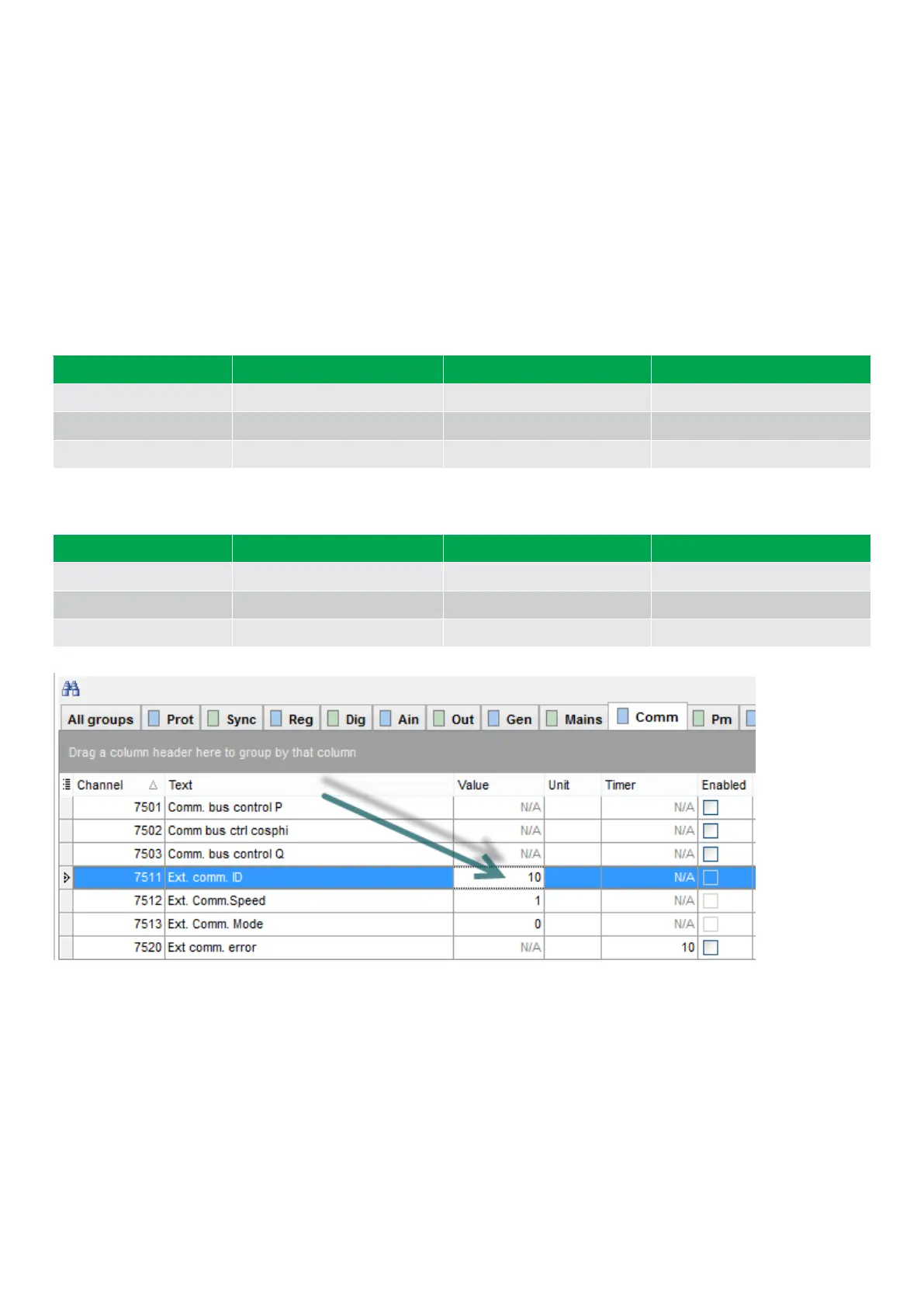 Inverter Modbus ID Baud rate selected DEIF ASC comm. ID
