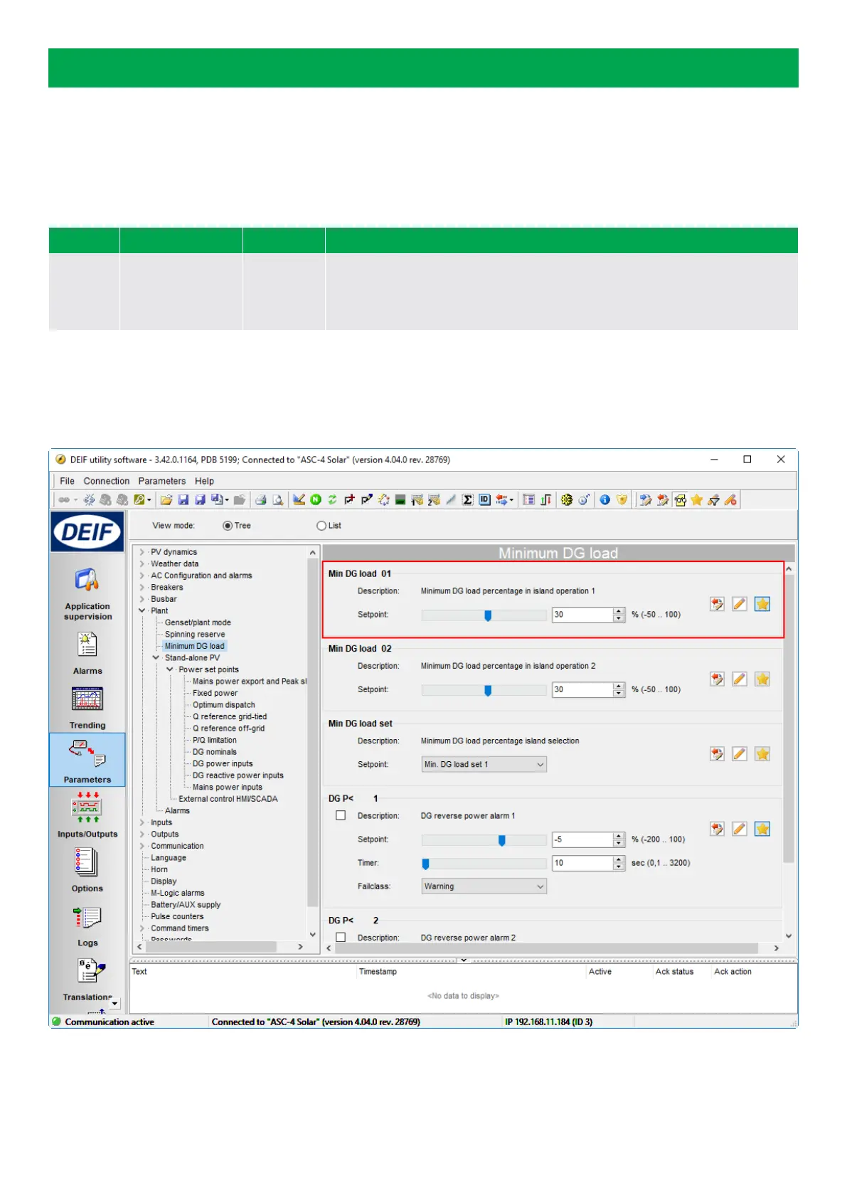 In off-grid mode, the set point will be as high as possible but will be curtailing the PV in order to keep the genset minimum load.