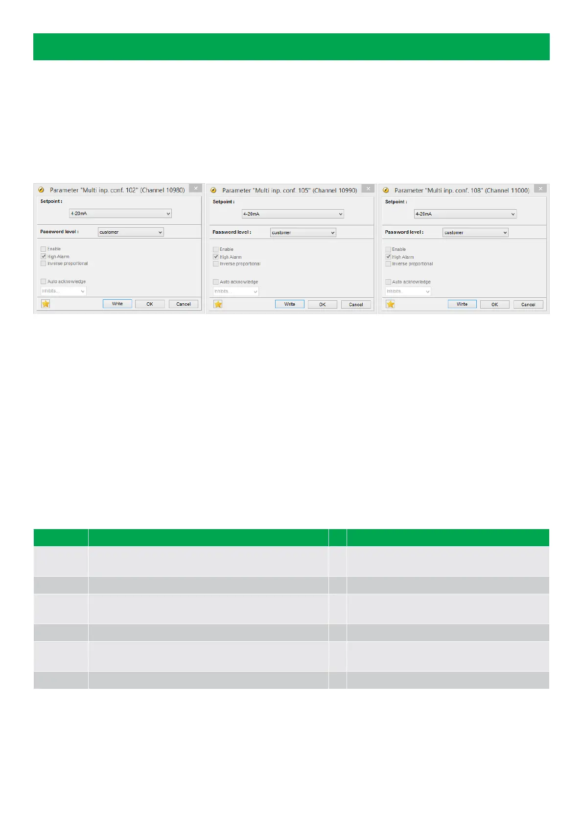 Multi-input 102, 105, 108 are configured to 4-20 mA signals in menus 10980/10990/11000 in the utility SW.
