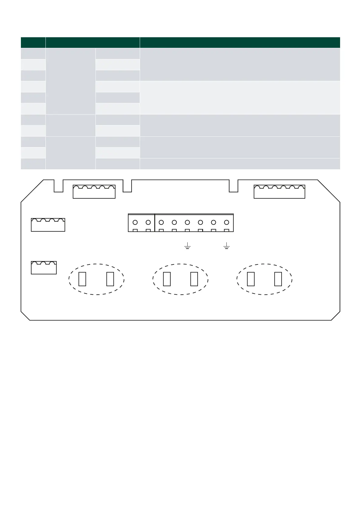 NOTE Use strips to terminate cable shields to PCB to avoid noise (see the dashed circles).