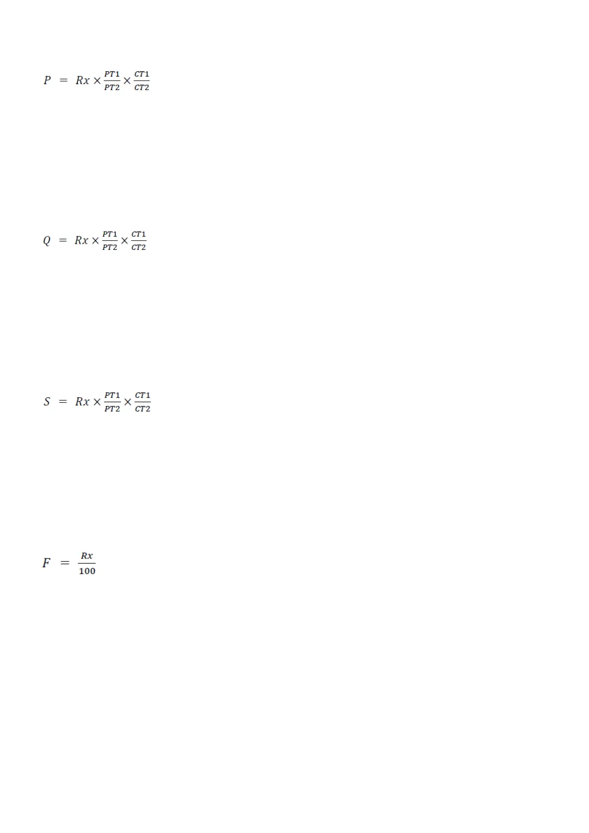 where Rx = register value, CT1 and CT2 = current transformer data, and PT1 and PT2 = voltage transformer data.