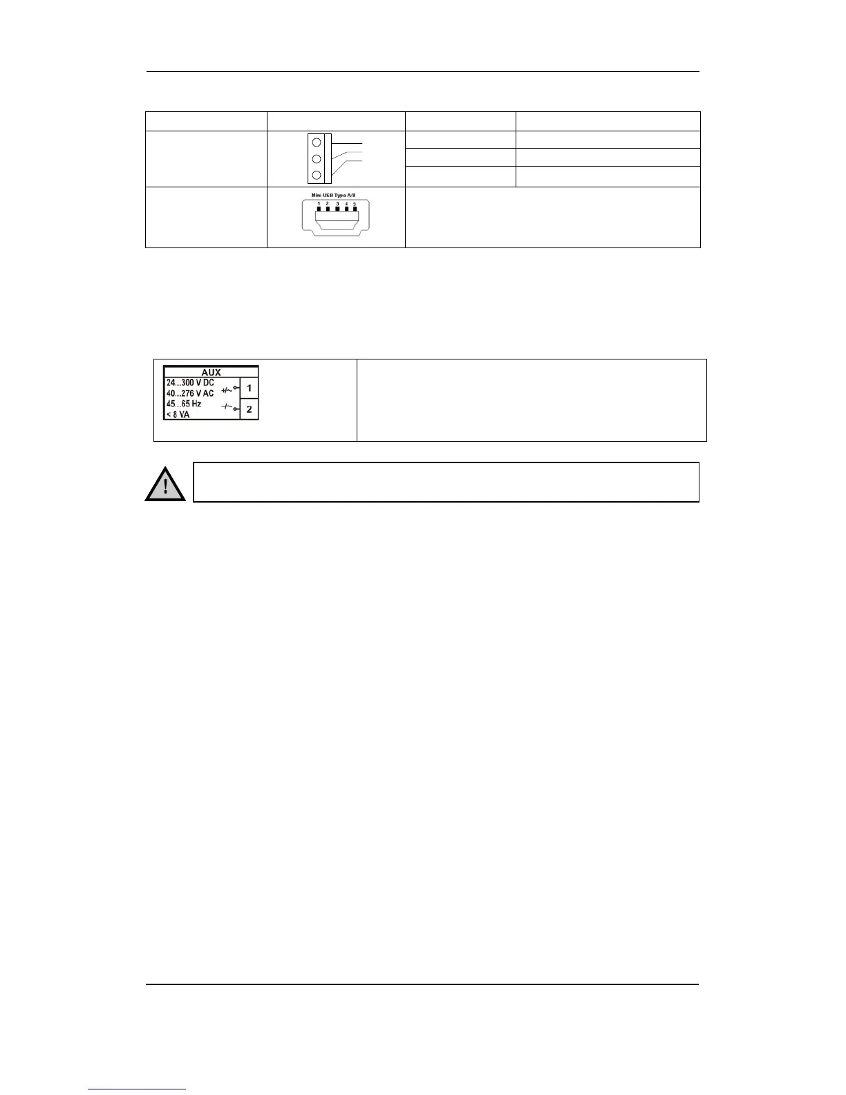 consumption is given in the data sheet. Auxiliary supply is connected through a screw terminal