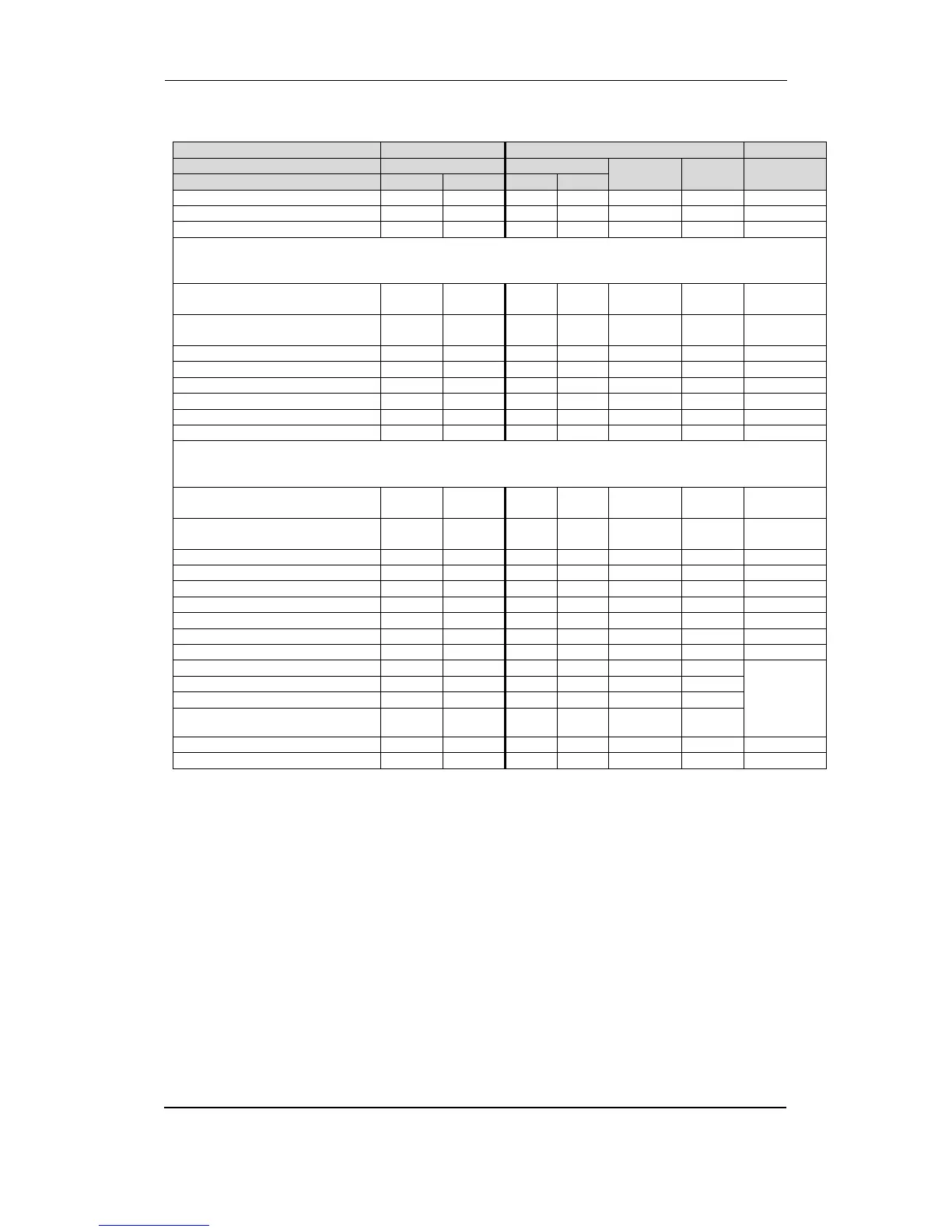 Register table for the normalised actual measurements (in %) (VERSION 1)