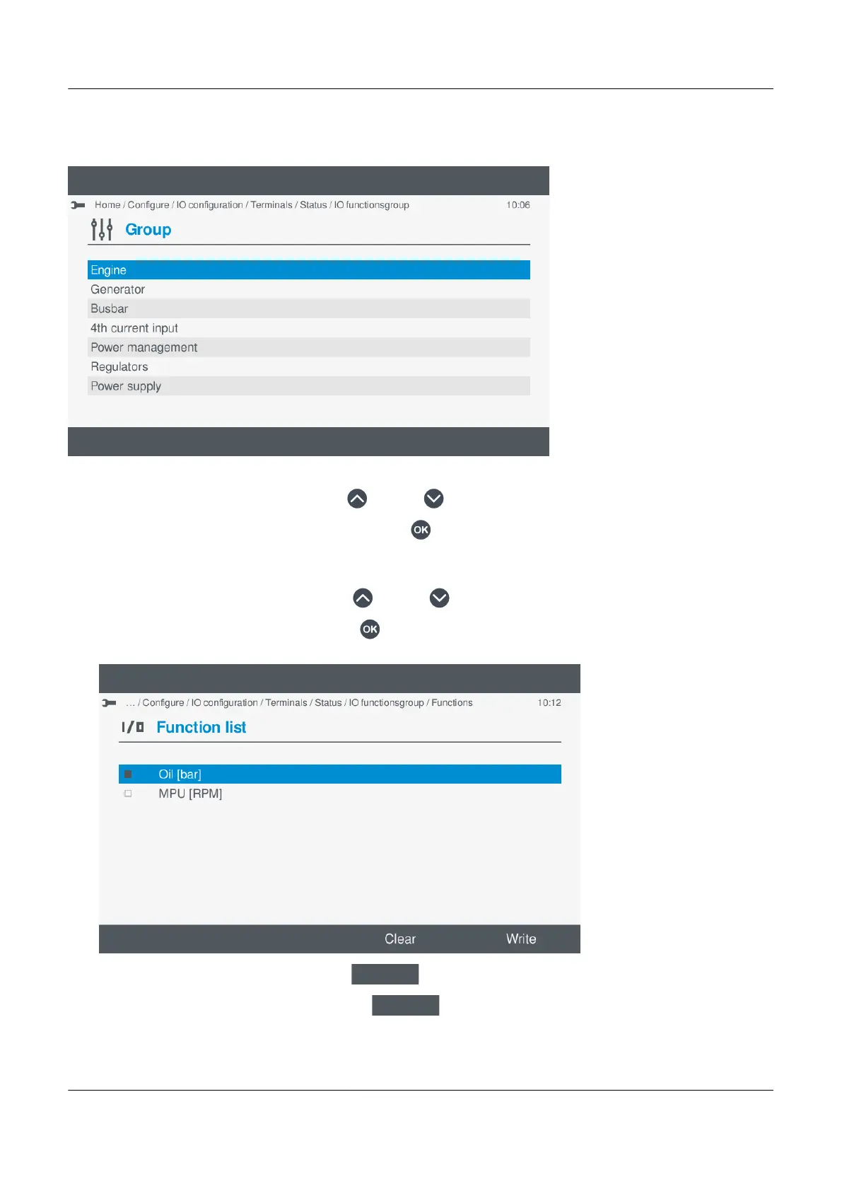 • Another group may be shown or the function list to select the actual function.