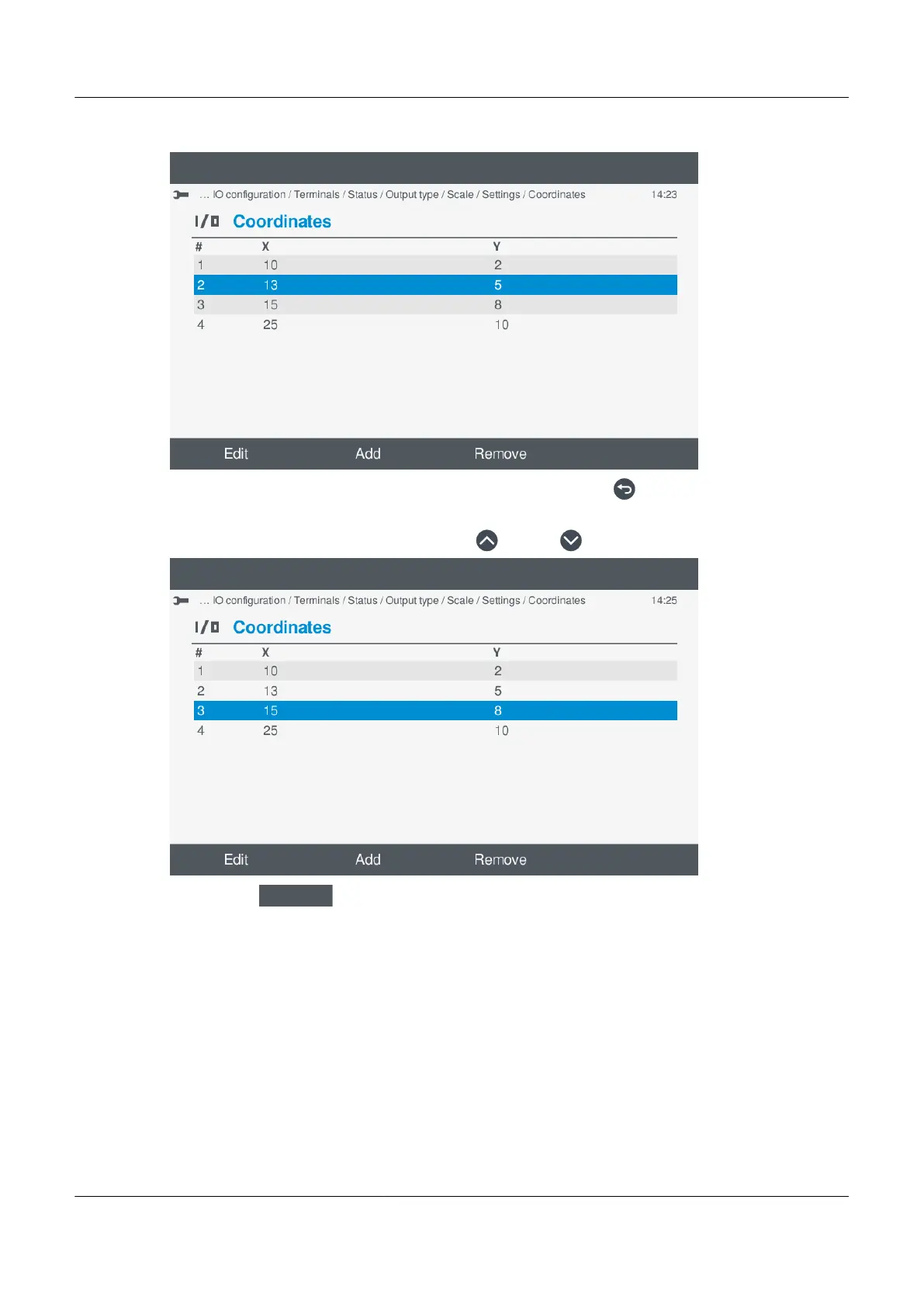 a. Highlight the coordinate to remove, by pressing Up
