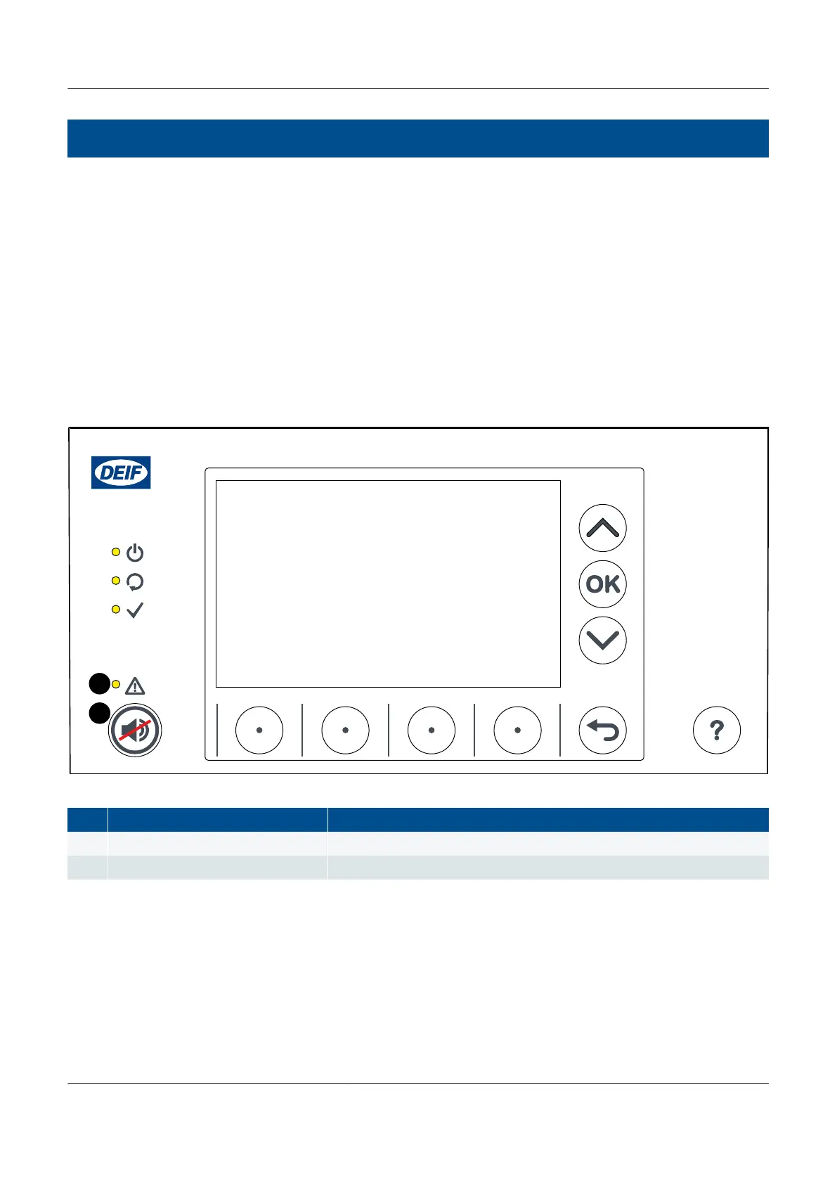 1. Alarm indicator (LED) Displays the current alarm situation for the system.
