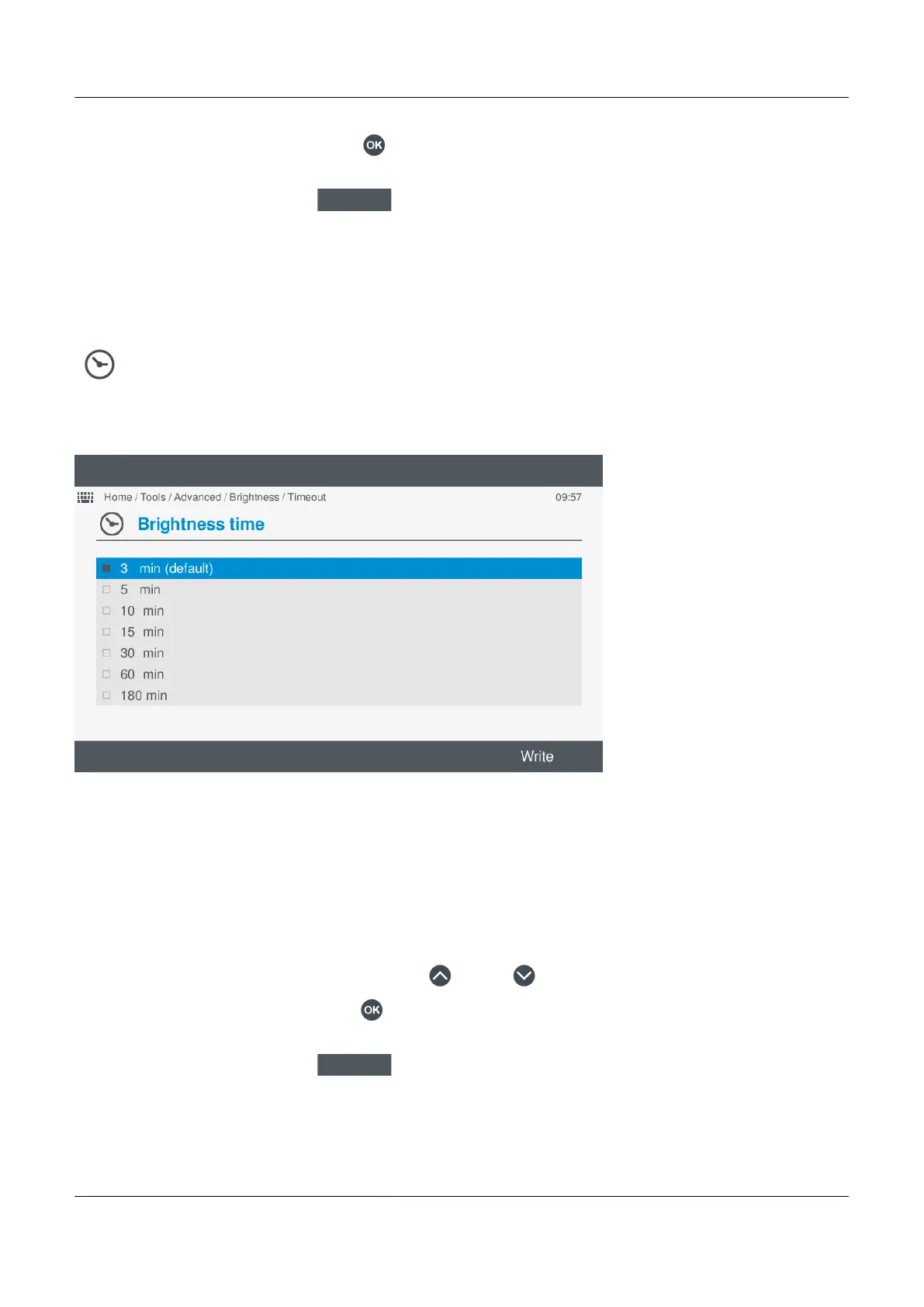 • After the brightness time setting expires, due to inactivity with the display unit, the display becomes the brightness level.
