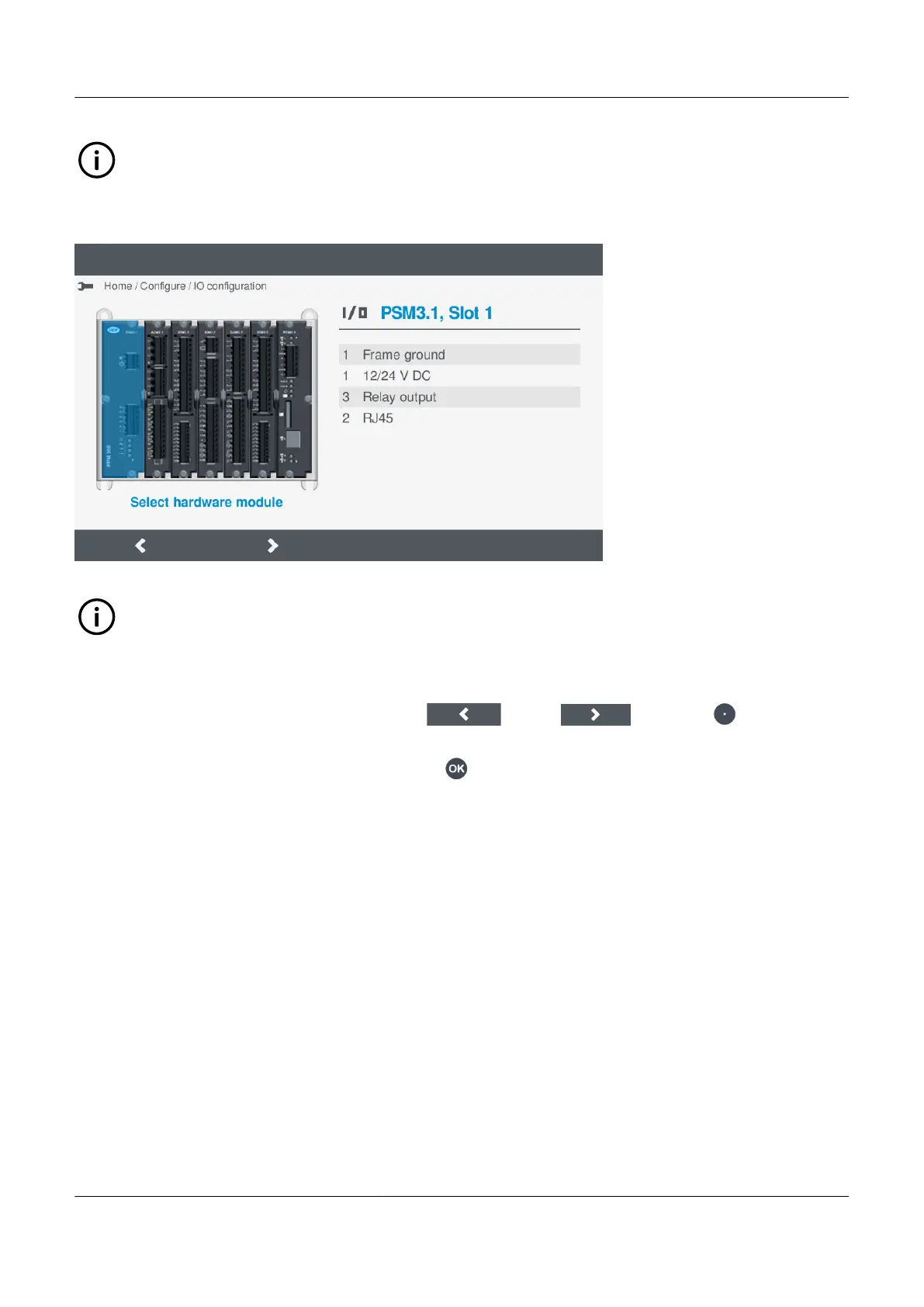 2. Select the highlighted hardware module by pressing OK .