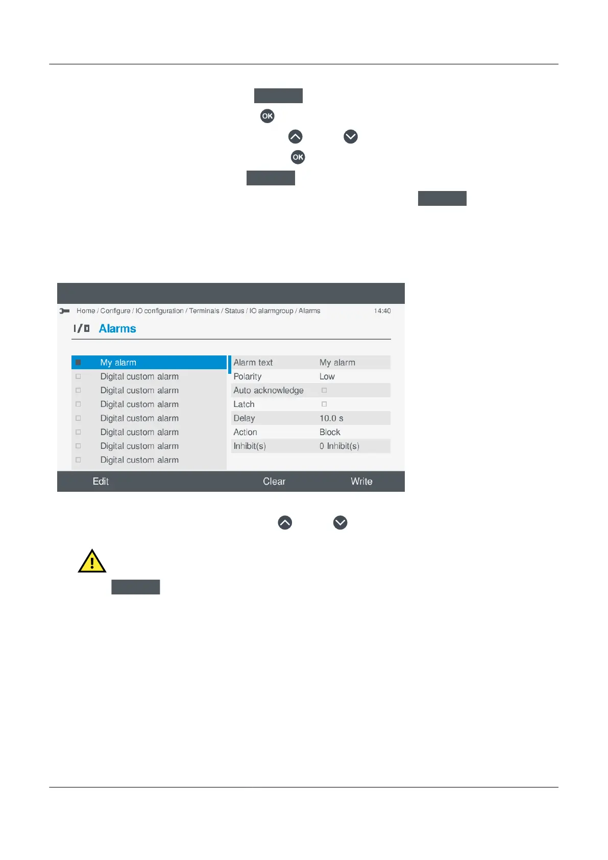 c. Once you have made all the required changes to the alarm settings, select Write