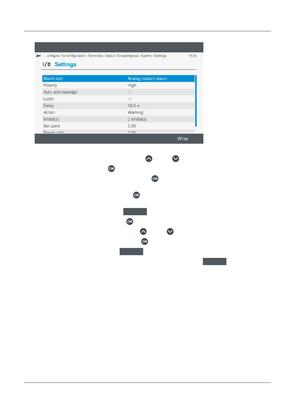 c. Once you have made all the required changes to the alarm settings, select Write