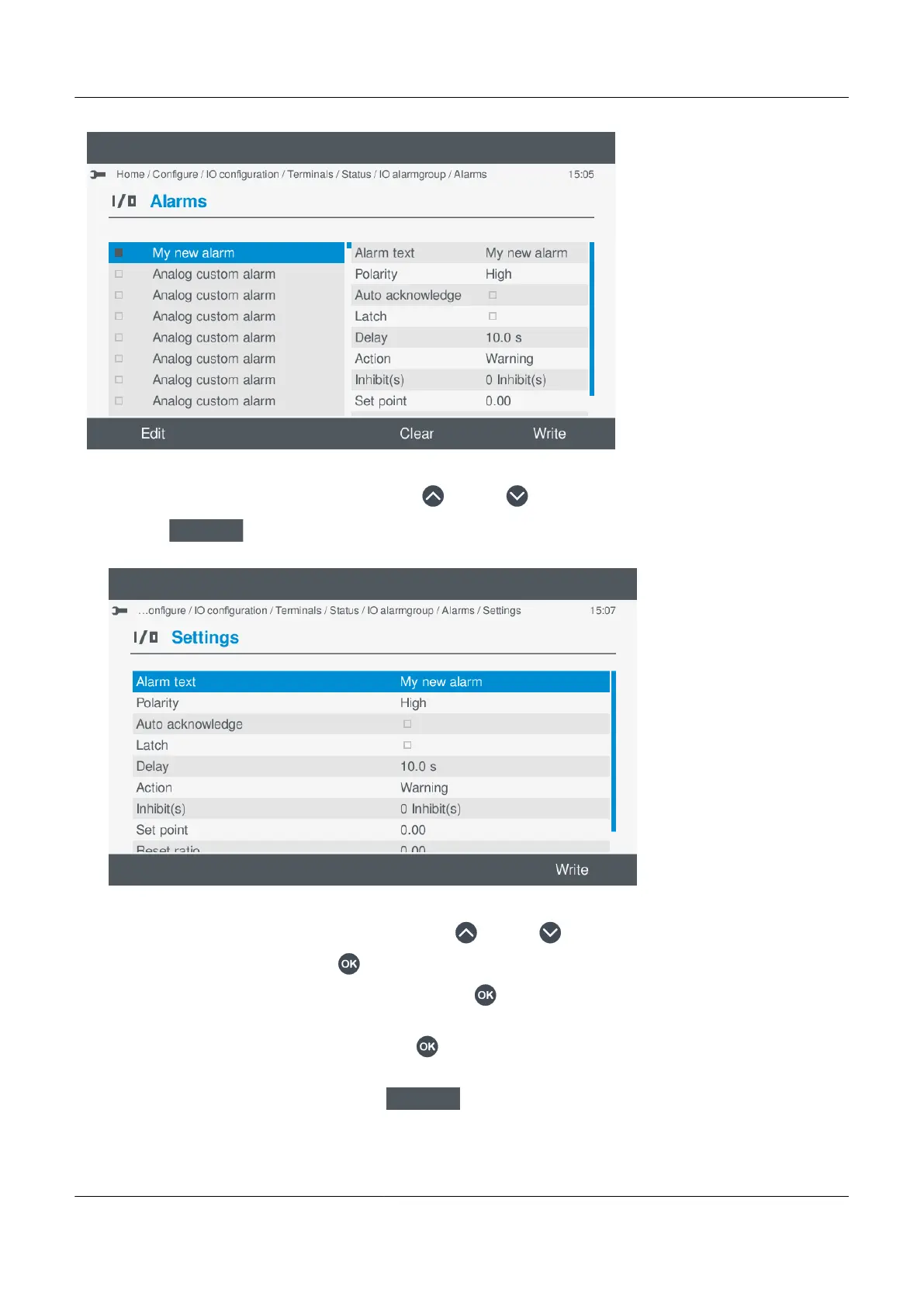 a. Highlight the required alarm setting, by pressing Up or Down .