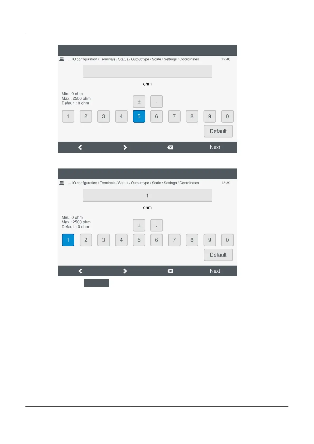 c. Enter the y-axis coordinate using the Virtual keyboard: