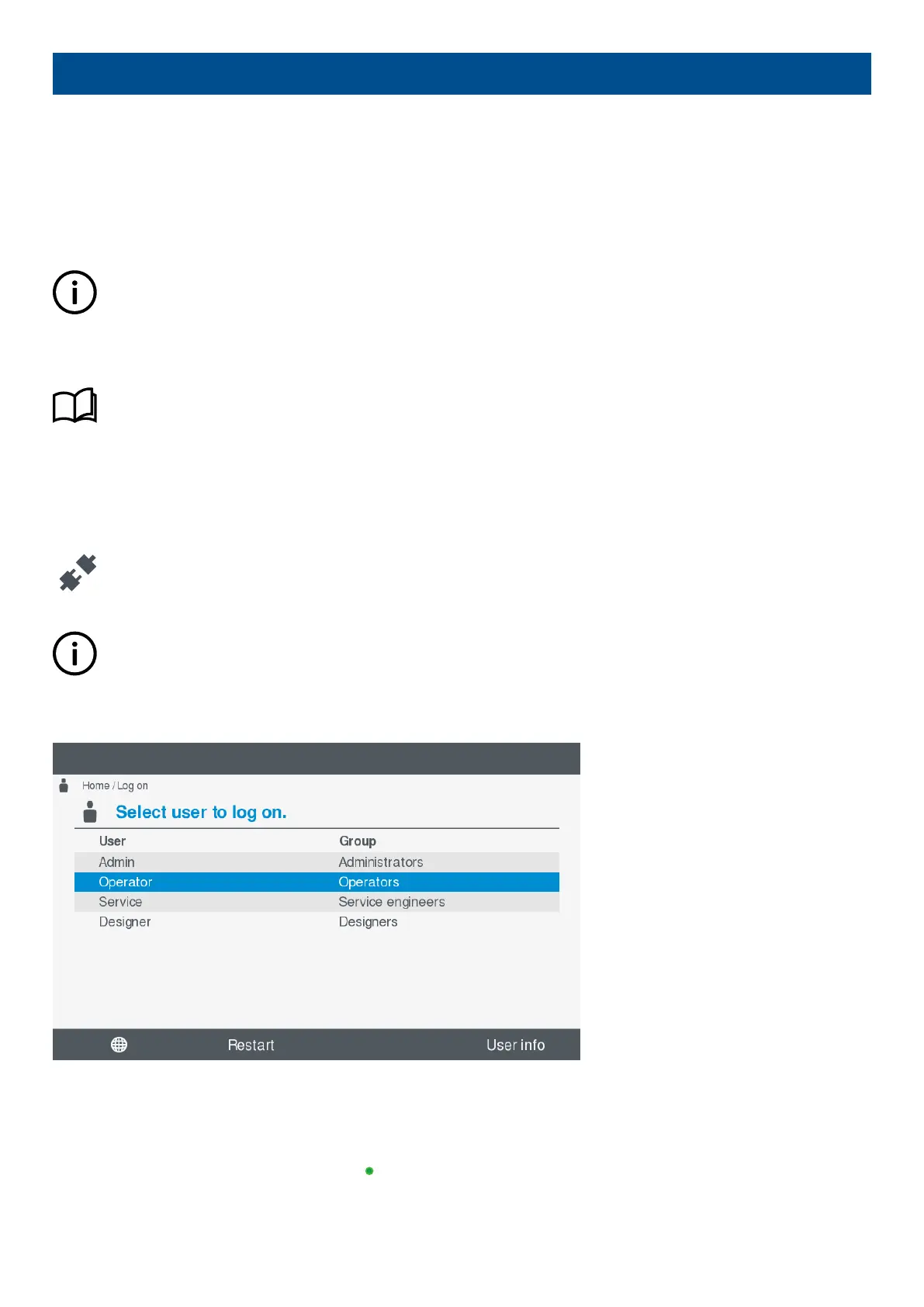 1. Select Log on, from the Home menu, to view the available users for the controller.