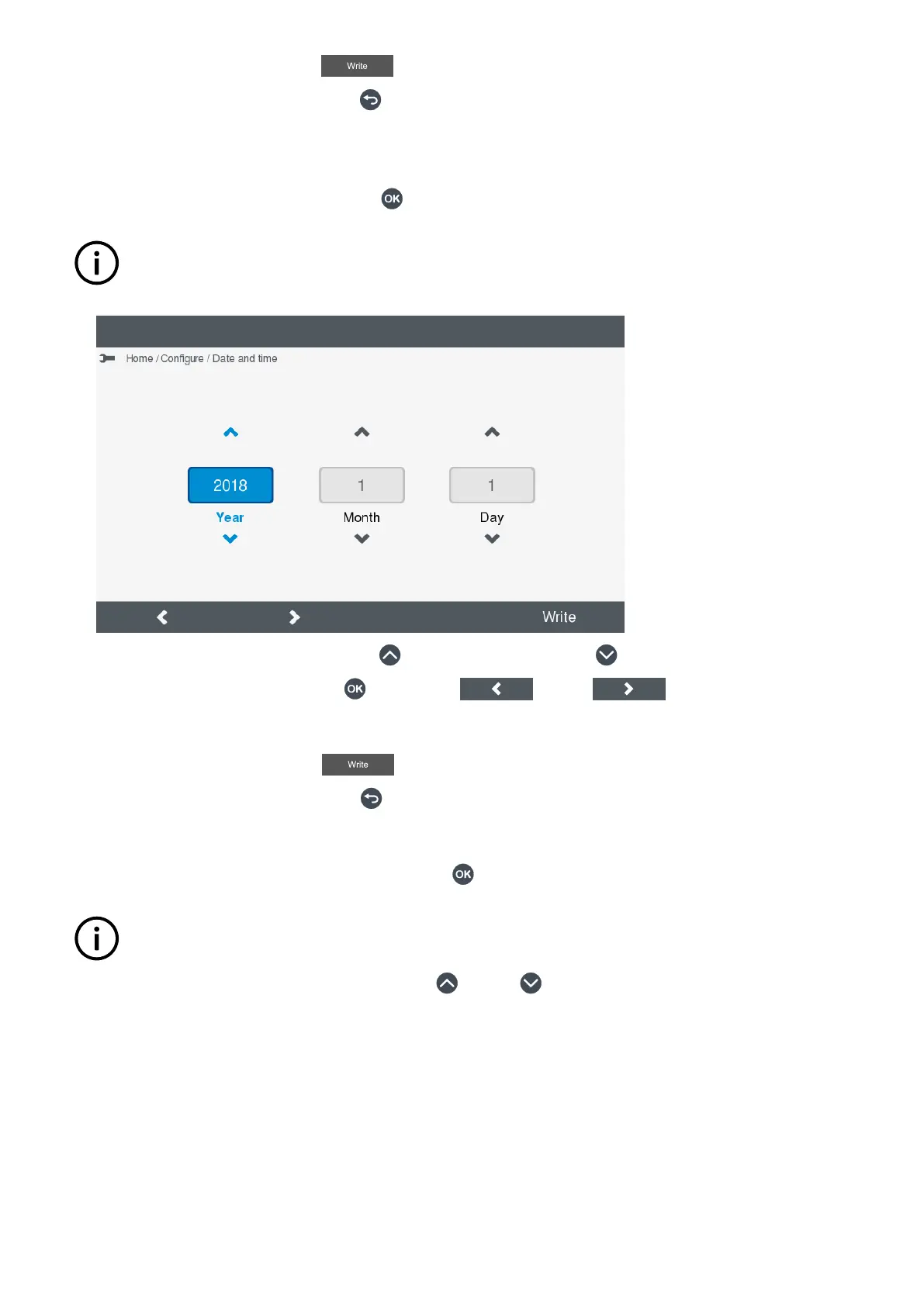 • Set the new date by selecting Write .